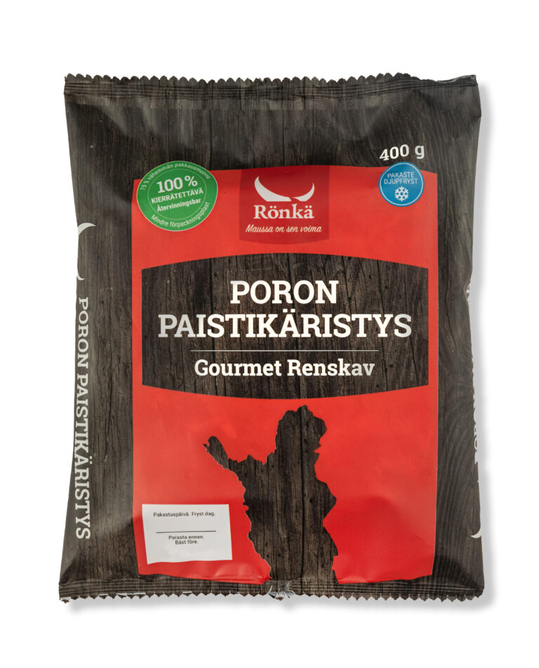 Parhaan poronkäristyksen salaisuus piilee ohuissa poronpaistilastuissa, jotka vuollaan jäisestä paistista. Siksi terävä ja tukeva puukko on käristyksen kokkaajan tärkein työkalu! Rönkä Poronkäristystuotteet on siivutettu valmiiksi, joten säästät rutkalti aikaa ostamalla paistovalmiit käristykset kaupan pakastealtaasta.